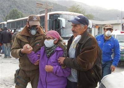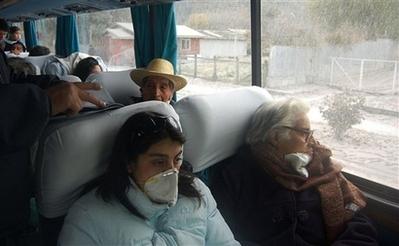 智利當(dāng)?shù)貢r(shí)間6日,柴騰火山附近的村民帶著防護(hù)口罩開(kāi)始撤離。