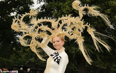 中新網(wǎng)6月19日電 據(jù)英國媒體報道,英國皇家賽馬會18日進入第三天,也就是英國人所稱的“淑女日”,依照傳統(tǒng),這一天女士們都會戴著造型奇特創(chuàng)意十足的帽子亮相,爭奇斗艷吸引眼球。