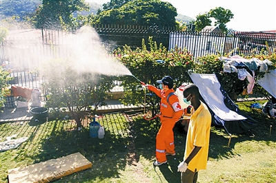 中國國際救援隊(duì)醫(yī)療分隊(duì)同時(shí)還在災(zāi)區(qū)開展了衛(wèi)生宣教、衛(wèi)生防疫工作。據(jù)侯世科介紹,海地總理府附近聚集了近千名災(zāi)民,震后衛(wèi)生條件極差,許多尸體沒有及時(shí)掩埋,災(zāi)民缺少食物、藥品,隨時(shí)可能出現(xiàn)腸道傳染病等疾病的蔓延。中國醫(yī)護(hù)人員對300多平方米的災(zāi)民聚集點(diǎn)進(jìn)行了噴灑消毒!拔覀償y帶的消毒藥用得很快,明天我們會(huì)帶更多的藥物去現(xiàn)場!
