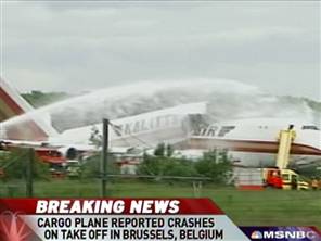 美運(yùn)輸機(jī)在比利時(shí)機(jī)場(chǎng)起飛時(shí)墜毀并斷為兩截(圖)