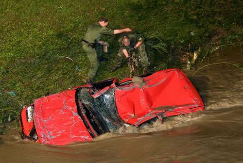 據(jù)報(bào)道,在措勒納伯縣,有多輛汽車被洪水卷走(見(jiàn)圖),目前車上人員生死不明。當(dāng)?shù)匾殉闪⒁粋(gè)危機(jī)應(yīng)急指揮部。在容吉根地區(qū),大量房屋浸泡在水中,電力供應(yīng)中斷。在上施瓦本地區(qū),一列列車撞上了被暴風(fēng)雨刮倒的樹(shù)木,火車司機(jī)生命垂危,已被緊急送往醫(yī)院救治。另有3名婦女被淹死。