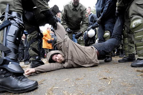 一位警方發(fā)言人稱,有1000多名反核示威者坐在位于小鎮(zhèn)戈萊本附近的存儲設(shè)施大門外,部署在那一地區(qū)的數(shù)千名防暴警察已將示威者逐個拖走。這些示威者是15000多名示威者中的一部分,示威者在上周末舉行了大規(guī)模的示威活動以阻止核廢料抵達(dá)存儲設(shè)施。警方為了保證核廢料運輸活動的安全部署了16000名警員。