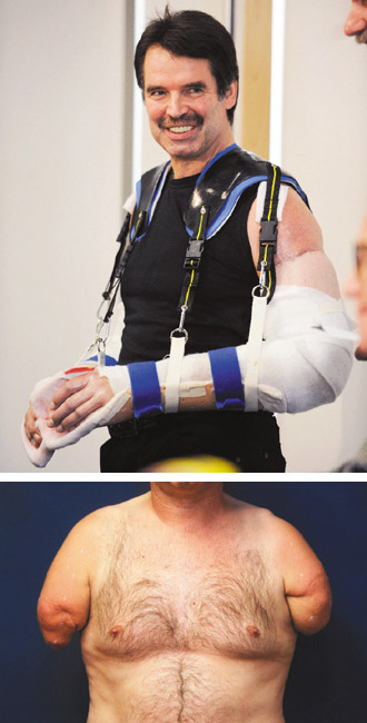 默克展示自己的雙臂高興地說,難以形容再度完整的感覺:“我的機動性每天不斷增加”。默克的療程仍在持續(xù)進行,雙臂目前用一件特殊的“緊身衣”支撐著。