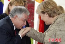 卡欽斯基親吻德國總理默克爾