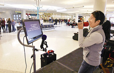 美國機(jī)場設(shè)卡拉OK 乘客等待登機(jī)時(shí)打發(fā)時(shí)間(圖)
