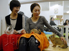 中新網(wǎng)1月6日電 可以讓顧客和兔子親密接觸的“兔兔咖啡館”去年7月在日本名古屋東區(qū)開張,除了帶孩子的父母和女性客人以外,許多下班回家的公司職員也經(jīng)常光顧,生意非常興隆。該店“園長(zhǎng)”倉(cāng)田直基(36歲)說(shuō):“兔子有著心靈治療的神奇力量。人們都喜歡和它們接觸,獲得內(nèi)心的平和。”