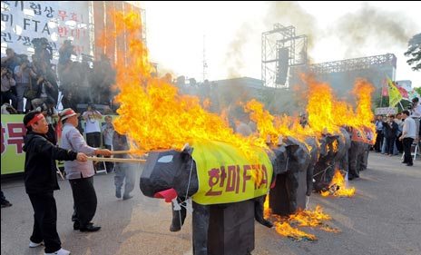 上百名游行示威者在首爾市中心燭光守夜,抗議李明博政府恢復(fù)進口美國牛肉,漠視民眾對瘋牛病的擔(dān)心。警察隨即驅(qū)散游行者,并以非法占用街道需接受審訊為由逮捕了37名拒絕驅(qū)散者。