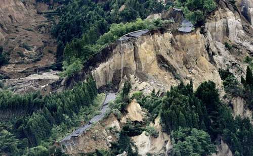 巖手縣一關(guān)市矢柜水庫附近發(fā)生了幾處塌方,當(dāng)?shù)叵狸?duì)員介紹“還未確認(rèn)詳情”,正集中收集受災(zāi)信息。