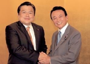 資料圖:麻生太郎(右)和赤羽一嘉合影