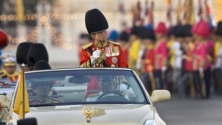 當(dāng)天下午,泰國首都曼谷的五世王廣場一帶張燈結(jié)彩,每年一度的慶祝國王生日閱兵典禮在這里隆重舉行。接受檢閱的泰國各兵種官兵在武裝部隊總司令的帶領(lǐng)下向國王宣誓效忠。國王隨后發(fā)表了簡單講話,希望軍隊保持團結(jié),為維護國家和人民利益發(fā)揮積極作用。