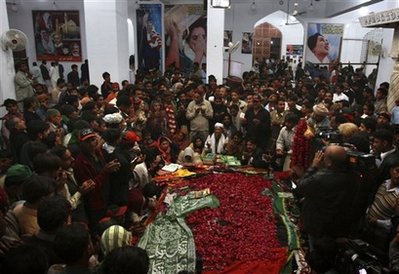 12月27日,巴基斯坦民眾悼念貝•布托。