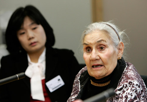 據(jù)悉,這三位老人于本周二出席歐洲議會(huì)并作證,敦促歐洲議會(huì)針對(duì)日軍“慰安婦”問題做一個(gè)公開聲明。此舉是國際特赦組織“制止對(duì)婦女實(shí)施暴力”運(yùn)動(dòng)的一部分內(nèi)容。