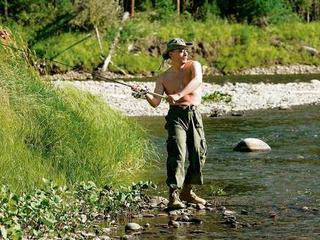 去年8月刊登的普京赤膊釣魚照片顯示了時(shí)任總統(tǒng)的普京在西伯利亞葉尼塞河釣魚的情景,人們?cè)谀抢锟吹搅似站┛偨y(tǒng)前所未有的“酷”形象:他露出魁梧的上半身,頭戴軍用野營(yíng)帽,戴著一幅太陽(yáng)鏡,手里拿著一根釣魚桿,他的釣魚動(dòng)作非常優(yōu)雅和專業(yè)。