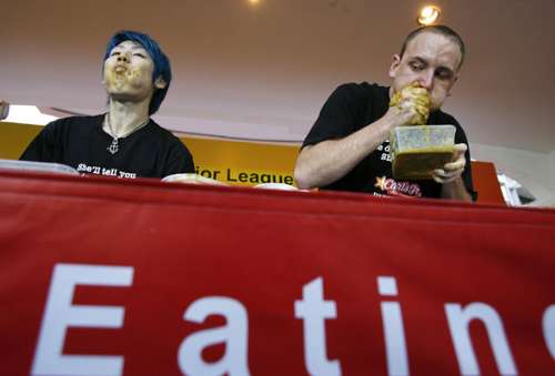 小林在競(jìng)食界得獎(jiǎng)無數(shù),曾連續(xù)六年贏得美國(guó)紐約知名的“內(nèi)森”熱狗競(jìng)食大賽冠軍,但在二○○七年和剛過去的七月四日連續(xù)兩屆輸給切斯納特飲恨。