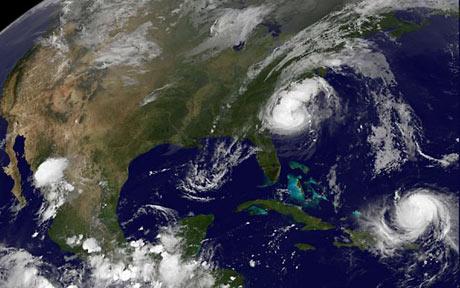 衛(wèi)星云圖顯示加勒比海生成的颶風(fēng),其中“漢娜”已經(jīng)逼近美國(guó)。