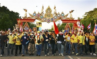 延續(xù)數(shù)月的示威及包圍已導(dǎo)致泰國政府陷入癱瘓。PAD領(lǐng)袖宋杰表示:“愿勝利與人民同在!彼⒅厣,泰國總理頌猜是前總理他信的傀儡,必須下臺。群眾包圍總理臨時(shí)辦公室使朝野對峙局面驟然升高。