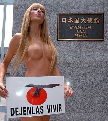中新網(wǎng)12月3日電 綜合報道,12月1日,阿根廷模特Vanessa Carbone裸體手持“讓它們活下去”的牌子站在日本駐圣地亞哥大使館門前抗議捕鯨和非法販運獸皮。這個抗議活動要求智利政府下令宣布其在太平洋的領(lǐng)海為鯨魚保護(hù)區(qū)。