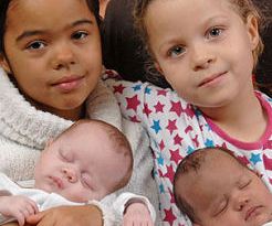 中新網(wǎng)1月4日電 據(jù)臺灣東森新聞網(wǎng)報道,英國有一對現(xiàn)年33歲與27歲的年輕夫妻,在2001年生下了一對罕見的黑白雙胞胎,沒想到相隔7年后,這對夫妻又奇跡般的再次生下另一對黑白雙胞胎。專家表示,孕婦連生兩組黑白雙胞胎的概率,就像是在同一個地方被閃電擊中兩次一樣,可說是微乎其微。
