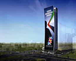 據(jù)新加坡《聯(lián)合早報(bào)》13日報(bào)道,這幢廣告牌大樓由阿聯(lián)酋公司“Tameer Holidings”興建,樓高33層,采用LED顯示屏播出廣告。設(shè)計(jì)師正研究電子幕墻的設(shè)計(jì),盡量做到廣告牌不會(huì)阻擋天然光射進(jìn)辦公室。