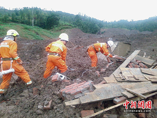 中新網(wǎng)6月29日電 6月28日14時(shí)30分左右,貴州省關(guān)嶺縣崗烏鎮(zhèn)大寨村因連續(xù)強(qiáng)降雨引發(fā)山體滑坡,造成該村兩個(gè)村民組107人被困或被掩埋。據(jù)中央電視臺(tái)最新消息,經(jīng)過(guò)幾個(gè)小時(shí)的緊張救援,之前疑似發(fā)現(xiàn)生命跡象的吊腳樓已經(jīng)被救援官兵打開(kāi),里面全是淤泥,并沒(méi)有找到兩名7歲和9歲的男孩。