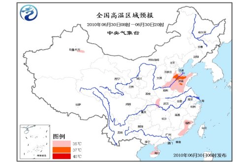 中新網(wǎng)6月30日電 據(jù)中國氣象局網(wǎng)站消息,中央氣象臺今日6時繼續(xù)發(fā)布高溫藍色預警,預計,今天白天,黑龍江、山西等地的高溫天氣將暫時告一段落,河北南部、河南東部和北部、山東大部、安徽北部、江蘇西北部、湖北西部、福建中南部的部分地區(qū)、廣東東部、海南北部等地將會出現(xiàn)35~37℃的高溫。另外,預計未來幾天,中國主要降雨帶將明顯北抬。