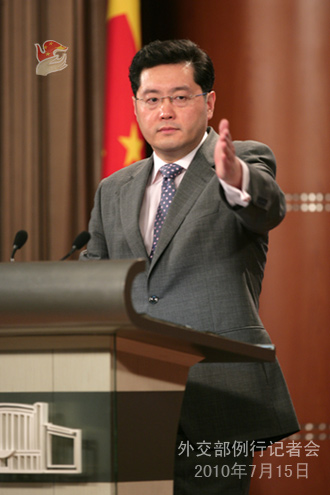 答:對于你提到的這兩個(gè)問題,我們的立場是一貫的、明確的。我們堅(jiān)決反對任何外國軍用艦機(jī)在黃海以及其它中國近海從事影響中國安全利益的活動。我們也希望在當(dāng)前形勢下,有關(guān)各方保持冷靜和克制,不做加劇地區(qū)局勢緊張的事情。