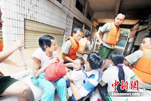 在特大洪水來臨之際,廣安市武警官兵充分發(fā)揮“特別能吃苦,特別能戰(zhàn)斗,特別能奉獻(xiàn)”的精神,積極戰(zhàn)斗在抗洪搶險(xiǎn)第一線,與洪水賽跑,與時間賽跑,深入街巷搜尋和和轉(zhuǎn)運(yùn)被洪水圍困的居民,確保群眾生命安全。 截至記者發(fā)稿時,廣安目前還沒有因?yàn)楹樗斐傻娜藛T傷亡。(完)