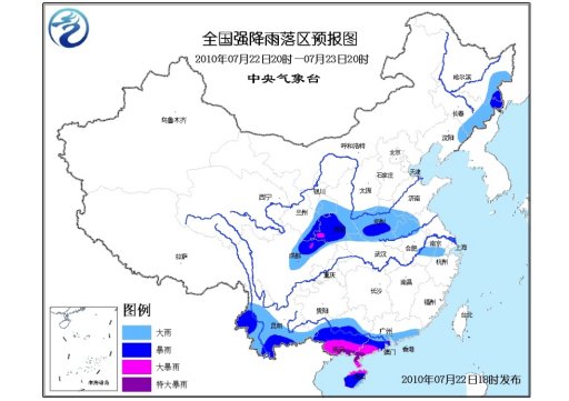 中新網(wǎng)7月22日電 據(jù)中央氣象臺(tái)網(wǎng)站消息,中央氣象臺(tái)7月22日18時(shí)繼續(xù)發(fā)布暴雨黃色預(yù)警:預(yù)計(jì),7月22日20時(shí)到7月23日20時(shí),廣東沿海和西南部、廣西大部、海南、云南西部和南部、四川盆地西部、甘肅東部、陜西中南部、湖北西北部、河南大部、安徽北部和東南部、浙江西北部以及黑龍江東南部、吉林東部、遼寧東北部等地有大雨或暴雨,其中,廣東西南部、廣西南部、海南北部的部分地區(qū)有大暴雨或特大暴雨;四川盆地西北部、陜西西南部的局部地區(qū)有大暴雨;上述地區(qū)局地并伴有短時(shí)雷雨大風(fēng)等強(qiáng)對(duì)流天氣。