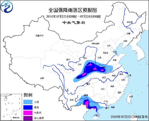中新網7月23日電 中央氣象臺2010年7月23日06時繼續(xù)發(fā)布暴雨黃色預警: