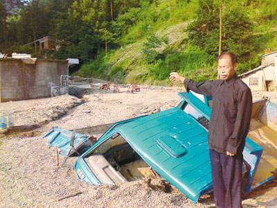 24日凌晨5點(diǎn)多,天麻麻亮,胡仁海聽(tīng)到山洪聲音好大,就趕緊起來(lái)。他看到山洪激起的水浪有十幾丈高。胡仁海擔(dān)心大雨滑坡,就把孫子“拉拉”安頓在靠河的房子里。突然,身后一陣巨響,他回頭去看,只見(jiàn)巨大的山洪將靠河的房子連根沖走,他的孫子“拉拉”,嘩啦一下就被洪水沖走了……