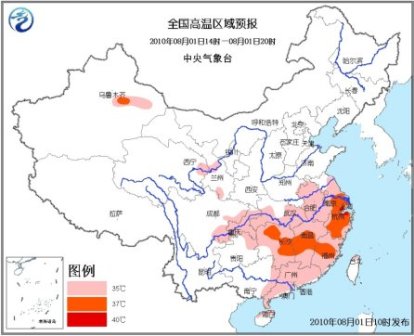 預(yù)計(jì),今天下午,黃淮南部、江淮大部、江漢南部、江南、華南中東部、四川盆地東部和南部、重慶大部、貴州東北部、甘肅中部以及臺(tái)灣北部等地有35~37℃的高溫天氣,局部地區(qū)最高氣溫可達(dá)38~40℃。