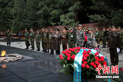 中新網(wǎng)哈薩克斯坦阿拉木圖9月20日電 (記者 孫自法)“和平使命-2010”聯(lián)合反恐軍事演習(xí)中、俄等參演部隊代表一行,19日專程前往阿拉木圖市潘菲洛夫勇士紀念公園,獻花憑吊“二戰(zhàn)”時參加莫斯科保衛(wèi)戰(zhàn)的反法西斯英烈。