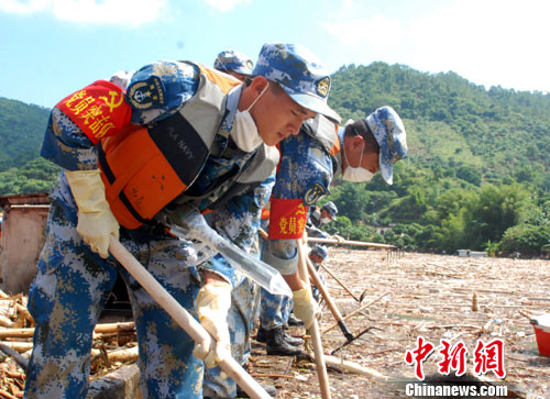 從昨夜開始,前期到達(dá)的部分官兵及工程車輛在高州重災(zāi)區(qū)馬貴鎮(zhèn),疏通道路、搜索失蹤人員、搶救物資;工兵分隊(duì)奔赴信宜市對(duì)危險(xiǎn)山體進(jìn)行爆破,部分陸戰(zhàn)隊(duì)員對(duì)廣東省第三大水庫高州水庫水面漂浮物進(jìn)行清理。指揮員張文勝上校告訴筆者,目前工程機(jī)械分隊(duì)連夜打通長(zhǎng)約1公里被泥石流堵塞的道路,清污的官兵已打撈起數(shù)十噸水面污染物,工兵分隊(duì)正在對(duì)爆破體進(jìn)行前期論證。 完