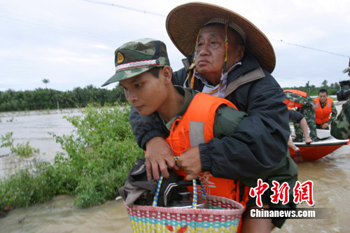 中新網(wǎng)瓊海10月6日電(孫勇)連日來,特大暴雨襲擊海南,道路、田地等一片汪洋,給人民群眾的生命財(cái)產(chǎn)安全造成了嚴(yán)重威脅。武警海南總隊(duì)官兵聞?dòng)嵕o急出動(dòng),全力以赴迎戰(zhàn)洪魔,竭盡全力搶險(xiǎn)救災(zāi),疏散、轉(zhuǎn)移、搶救受災(zāi)群眾2000余人,挽回經(jīng)濟(jì)損失3500余萬(wàn)元。