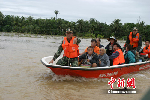 13時(shí)許,萬(wàn)寧市萬(wàn)城鎮(zhèn)紅關(guān)村暴雨持續(xù)不斷,1000余名村民需緊急轉(zhuǎn)移撤離。武警三亞市支隊(duì)奉命派出120名官兵,攜帶救生衣、雨衣等搶險(xiǎn)物資驅(qū)車趕往紅關(guān)村疏散轉(zhuǎn)移被困村民。由于村民躲在家里不愿上救生艇,官兵們一邊耐心說服、勸導(dǎo),一邊協(xié)同地方領(lǐng)導(dǎo)組織村民向安全地帶轉(zhuǎn)移。經(jīng)過將近6個(gè)小時(shí)的緊急撤離,所有被困村民安全轉(zhuǎn)移到安全地帶。