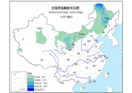 未來三天,冷空氣的勢(shì)力還將繼續(xù)向南推進(jìn)。中央氣象臺(tái)今天6時(shí)繼續(xù)發(fā)布寒潮藍(lán)色預(yù)警。預(yù)計(jì),24日8時(shí)至26日8時(shí),甘肅大部、青海北部、寧夏、陜西、內(nèi)蒙古南部、東北、華北、黃淮、江淮、江漢、江南北部、四川盆地東部、重慶、貴州北部等地將出現(xiàn)6~12℃降溫,其中,內(nèi)蒙古東南部、河北大部、東北大部、山東、江蘇北部等地的部分地區(qū)降溫幅度可達(dá)14~16℃;上述大部地區(qū)并伴有4~6級(jí)偏北風(fēng)。內(nèi)蒙古南部和東北部、甘肅中東部、青海、寧夏、華北北部、黑龍江、吉林等地將有小到中雨轉(zhuǎn)雨夾雪或小到中雪,局地有大雪。