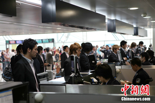 5日下午兩點(diǎn)20左右,日本國奧隊(duì)球員們一行34人來到廣州白云國際機(jī)場,當(dāng)時(shí)正值亞運(yùn)大家庭成員入境高峰期,在合理調(diào)整勤務(wù)后,邊檢民警按程序?yàn)槿毡緡鴬W隊(duì)球員辦理了邊防檢查手續(xù)。