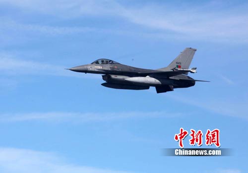 中國(guó)國(guó)家主席胡錦濤11月6日乘專機(jī)抵達(dá)里斯本。這是胡錦濤就任國(guó)家主席以來首次對(duì)葡萄牙進(jìn)行國(guó)事訪問,也是中國(guó)國(guó)家元首時(shí)隔11年再次對(duì)葡萄牙進(jìn)行國(guó)事訪問。專機(jī)駛?cè)肫咸蜒李I(lǐng)空后,葡方派兩架戰(zhàn)斗機(jī)護(hù)航。圖為在胡錦濤所乘專機(jī)右翼護(hù)航的葡萄牙戰(zhàn)機(jī)。