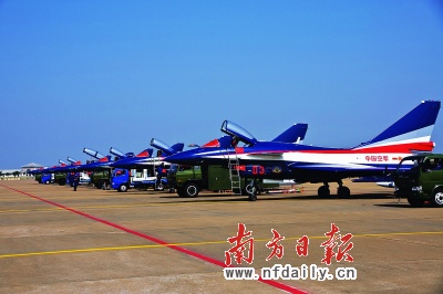 據(jù)了解,八一表演隊由航空兵某師師長嚴(yán)鋒帶隊,于昨日上午10點從天津某基地起飛。