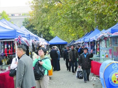 昨天上午,記者來到山巷廣場,發(fā)現(xiàn)這里帳篷如林,各種奇石玉器琳瑯滿目,眾多市民參觀購物。一位來自遼寧的王姓商販告訴記者,是一位姓劉的人主動發(fā)短信組織他們來此擺攤設(shè)點(diǎn)進(jìn)行玉器展銷的,每個攤位交納1000元。記者在一位遼寧女?dāng)傊鞯氖謾C(jī)上看到該短信:“鎮(zhèn)江首屆奇石玉器展在大西路山巷廣場舉辦,緊鄰富人區(qū),展費(fèi)1200元”。攤主們說,他們已經(jīng)將每個攤位一至兩千元的租金交給了劉某,劉某說罰款已交給城管了,讓他們放心大膽擺攤。