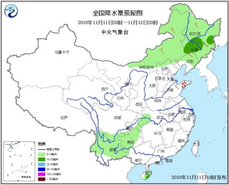11日20時(shí)至12日20時(shí),內(nèi)蒙古中東部、東北大部、河北西北部等地有小到中(雨)雪或雨夾雪,其中,內(nèi)蒙古東部偏南地區(qū)、遼寧北部、吉林大部、黑龍江東南部等地有大雪,內(nèi)蒙古東部偏南地區(qū)、吉林中部、黑龍江東南部等地的部分地區(qū)有暴雪;川西高原南部、重慶東部、湖北西南部、云南大部、貴州大部、廣西西部、海南大部等地有小到中雨。內(nèi)蒙古西部和東部、華北、東北地區(qū)、黃淮等地有4~6級(jí)風(fēng)。山東半島附近有揚(yáng)沙或浮塵天氣。渤海、黃海北部和中部將有7~8級(jí)、陣風(fēng)9級(jí)的西北風(fēng);臺(tái)灣海峽、臺(tái)灣以東洋面和以南海域、南海東北部海域?qū)⒂?~8級(jí)的東北風(fēng)。