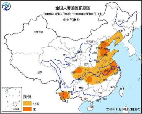 中央氣象臺(tái)11月30日18時(shí)發(fā)布大霧藍(lán)色預(yù)警:
