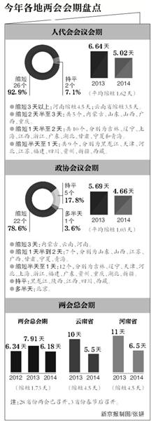 一年一度的省級地方兩會,近期密集召開。截至昨日,全國31個省份中,除安徽、海南、湖南將會期安排在春節(jié)后外,已有13個省份的兩會閉幕,15個正在召開。這是2012年年底“八項規(guī)定”出臺后的第二個地方兩會。嚴規(guī)之下,會期減短、不擺鮮花、不安排車輛接送等規(guī)定動作得到貫徹落實。此外,不設(shè)煙灰缸、邀請農(nóng)民工代表旁聽等自選動作,也在會場內(nèi)外頻現(xiàn)。專家認為,節(jié)儉、務(wù)實、高效是2014年全國地方兩會的新特點。