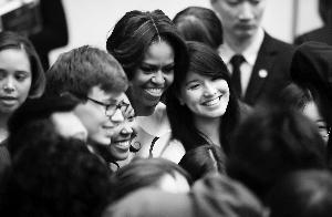 “我今天來到這里,是因為我知道,我們的未來,取決于全世界像你們這樣的年輕人之間的聯(lián)系。這也是為什么我們夫婦在國外訪問時,不只參觀宮殿和會晤國家元首。”米歇爾說,我們也來到學校。國與國之間的關(guān)系不只是政府或領導人之間的關(guān)系,它們是人民間,特別是年輕人之間的關(guān)系。
