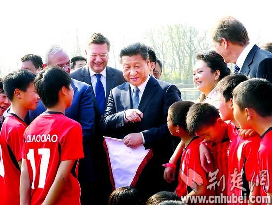 昨日,本報(bào)11版報(bào)道了國(guó)家主席習(xí)近平和夫人彭麗媛在德國(guó)沃爾夫斯堡足球俱樂(lè)部,看望在此訓(xùn)練的中國(guó)志丹紅安少年隊(duì)隊(duì)員。記者昨日了解到,來(lái)自我省紅安縣實(shí)驗(yàn)中學(xué)初一的球員朱靖代表球隊(duì),將簽滿(mǎn)全隊(duì)隊(duì)員名字的隊(duì)旗獻(xiàn)給了習(xí)近平。
