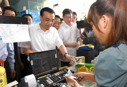臨走前李克強(qiáng)說,耽誤你做生意了,來了就消費一下,說著便掏錢買了一罐椰子脆片和一盒蛋卷,共計19元。