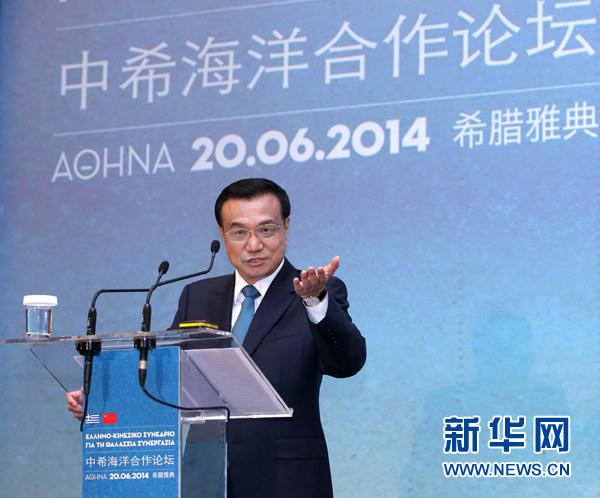 6月20日,國務院總理李克強在雅典與希臘總理薩馬拉斯共同出席中希海洋合作論壇并發(fā)表演講。新華社記者 龐興雷 攝
