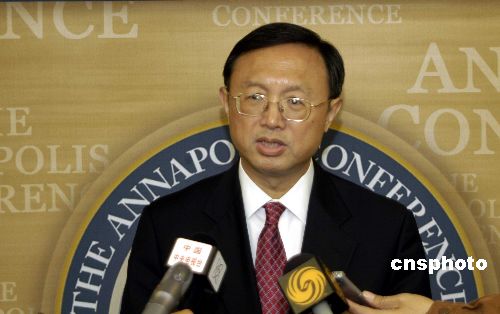 出席中東問(wèn)題安納波利斯會(huì)議的中國(guó)外長(zhǎng)楊潔篪27日對(duì)中國(guó)媒體表示,中國(guó)政府非常重視安納波利斯會(huì)議,認(rèn)為這次會(huì)議是國(guó)際社會(huì)推動(dòng)解決巴以問(wèn)題的重大努力。