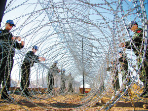 在荷槍實(shí)彈的非盟士兵護(hù)衛(wèi)下,中國(guó)維和官兵迅速投入忙碌的施工作業(yè)當(dāng)中。保障沙石的車(chē)輛來(lái)回穿梭,卷起陣陣煙塵;構(gòu)建防御工事的工地上,鐵絲網(wǎng)和野戰(zhàn)防御網(wǎng)墻一米米向前推進(jìn);另外一側(cè),一頂頂帳篷也搭建起來(lái)……為了趕進(jìn)度,官兵們每次都科學(xué)分工、齊心協(xié)力,盡量提高作業(yè)效率。盡管這樣,在現(xiàn)場(chǎng)指揮的馬建明還是有點(diǎn)兒著急:“大家都加把勁兒!不能讓后續(xù)部隊(duì)到了連住的地方都沒(méi)有啊!”