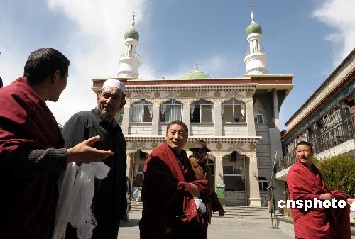 二十二日上午,大昭寺民管會(huì)負(fù)責(zé)人拉巴、旺扎等四名喇嘛前往拉薩市救助站,向目前還在這里接受救助的上百位各族各地受害信眾表示慰問,并向每人送上百元人民幣救助金。隨后,他們又來到拉薩清真大寺,喇嘛代表向該寺送上三萬元人民幣的慰問金,并與伊斯蘭教信眾共話藏、回民族團(tuán)結(jié)。